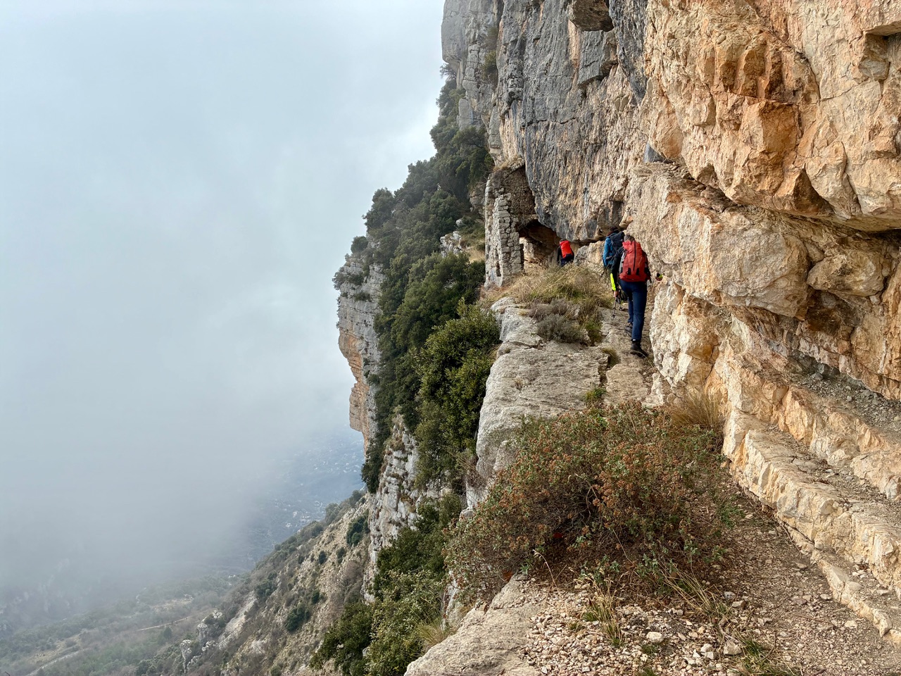 rando du 13 Janvier : Le col de Cavillore par le chemin du Paradis. 14,5km et 700m de D+. Animateur: Jean-Marc. Temps nuageux. 12 randonneurs ont fait le déplacement. Le temps est couvert mais il ne fait pas froid. Nous partons à 8h45, c'est l'hiver. La montée jusqu'à Gourdon se fait sans accroc, nous profitons du point de vue avant de repartir pou le Col de Cavillore. Nous y arrivons un peu avant midi. Il est temps de se restaurer. Un petit groupe de 5 est volontaire pou aller jusqu'à la forteresse troglodyte. Giorgio fait partie de ceux qui restent, le temps n'incitant guère à la sieste, le groupe repart tout doucement avant notre retour, nous les rattraperons. Le temps se fait plus clément et le soleil agrémente la fin de la sortie. La descente se fait par un chemin bien large au début, ça ne durera pas, les derniers hectomètres vers Bar sur Loup sont "un peu raides". Arrivés au voitures, nous profitons du bar à Lulu puis nous repartons chacun chez soi. Une randonnée hivernale agréable. Jean-Marc PHOTOS |