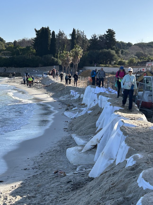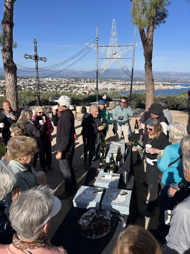 Jeudi 15 janvier : Randonnées Galette des Rois à La Garoupe Cette année aussi la galette des Rois du club s'est tenue à la Chapelle / Phare de La Garoupe, permettant de proposer 3 randonnées, ou zéro randonnée :) Le Groupe de Giorgio est parti du phare de La Garoupe, direction le port du crouton par quelques chemins détournés, et ensuite rejoindre le sentier de Tirepoil (tour du Cap d'antibes) . Jonction avec le groupe d'Alain R., ayant fait le tour du Cap en partant du parki ng du Ponteil. Traversée de la plage Keller en chantier !!! D'aucuns ont comparé le passage sur la plage à l'arête finale du Mounier, avec au choix passage par la plage, ou en passant d'un big bag de sable à l'autre :-)) (voir photos) Remontée tous ensembles vers le phare pour le pique-nique, et la galette des rois (provenance: pâtisserie artisanale JMpatisserie à La Gaude). Les courageux du groupe d'Alain R. n'en n'ont pas terminé, ils doivent retourner au parking du Ponteil Au final, une cinquantaine de participants, apparemment ravis d'avoir partagé ce moment de convivialité PHOTOS |