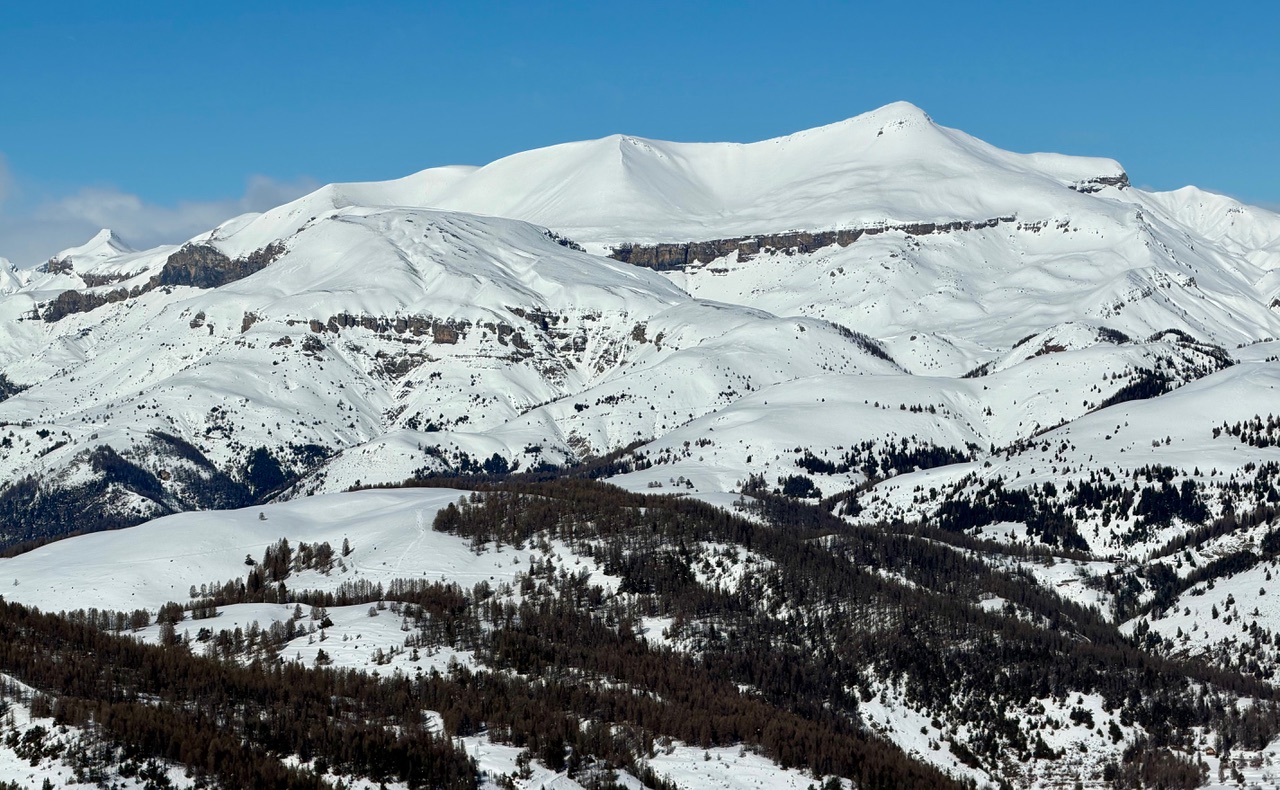 Départ du col de la Sinne à Ilonse vers 9h30 des 12 raquetteurs, par 2°C, sous un soleil radieux, malgré un petit vent froid parfois perçant. La rando commence par une agréable traversée sous bois, puis s’engage à découvert sur les vastes rondeurs du Lauvet d’Ilonse. Le vent reste modéré mais bien frais. La neige est excellente. La montée se poursuit par une large boucle sur les croupes du massif. 10 raquetteurs atteignent le sommet, un couple ayant décidé de s'arrêter plus tôt. Pour le repas, nous trouvons un endroit abrité du vent, lequel d’ailleurs se met opportunément à faiblir. Chocolat, limoncello, Slivovitz agrémentent le rata. Puis nous redescendons « à travers champs » dans une neige abondante et idéale. Aux voitures nous attendaient les délicieuse bugnes de Josiane et le bar à Lulu toujours très apprécié. Bilan : 540 m / 9,5 km et peut-être quelques coups de soleil. Michel. Quelques PHOTOS |