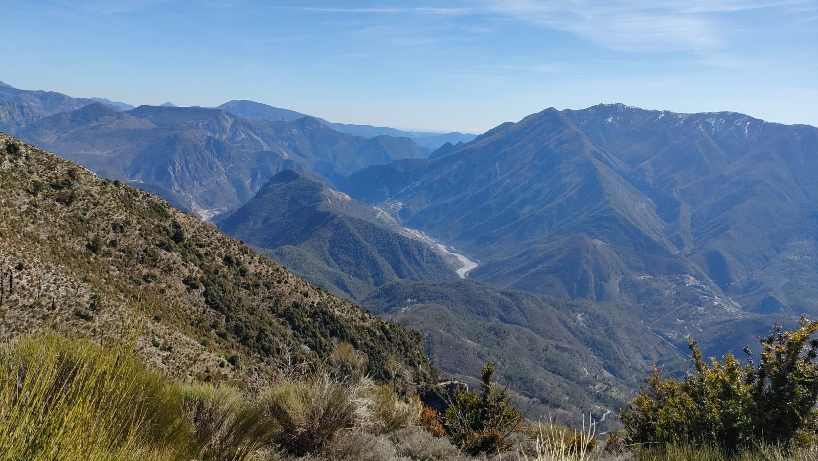 Mardi 17 mars 13 randonneurs ont réussi à traverser le Var par ce pont très ancien et étroit pour se rejoindre au magnifique village de Massoins. 9h 15 Départ sous un beau soleil, un environnement boisé, la montée assez raide et la chaleur nous ont obligé à nous déshabiller. Rapidement nous décidons de faire une "pause banane" pour reprendre des forces, avant de poursuivre notre chemin toujours aussi boisé et d'arriver au lieu dit du Lac. Profitons de la vue sur la vallée de la Tinée et de ses différents villages. Bairols, Pont de Clans, Clans, La Tour sur Tinée. Dernière difficulté, avec un sentier toujours aussi boisé, quelques résidus de neige, et petite grimpette avant d'arriver au Mont Falourde que tout le monde a réussi à joindre. Quelle récompense ! Soleil, vue magnifique sur les 2 vallées. Le retour fut tout aussi agréable mais tout le monde était bien content à l'arrivée aux voitures la descente ayant été sur la fin aussi difficile que sa montée. Bilan : 890 mètres et 14 kilomètres bravo à tous, belle découverte pour moi. Philippe PHOTOS |