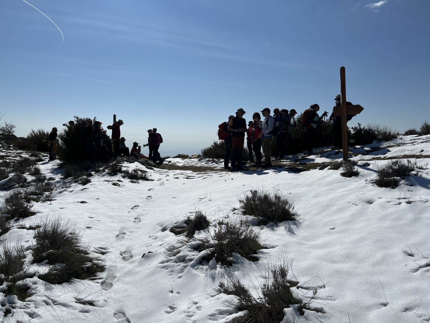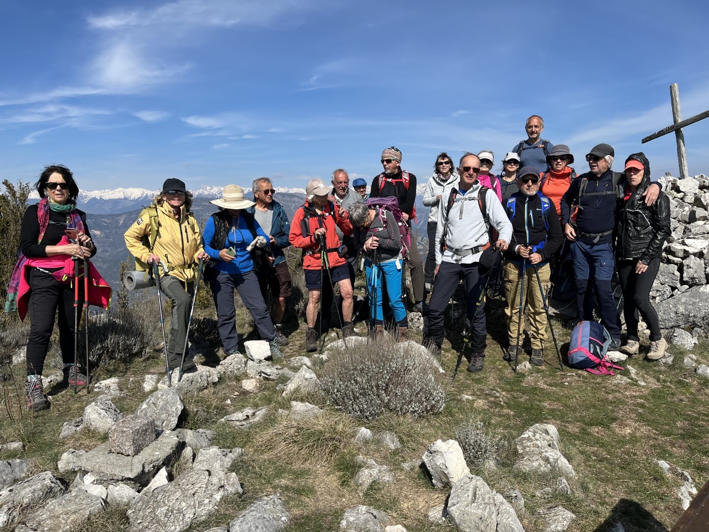 Rando du 24 Mars : Coursegoules Bouyon, étape du grand tour des baous. 15km ,530m de D+ et 950m de D-. Animateur: Jean-Marc. Beau temps. 19 randonneurs se sont inscrits. La principale difficulté du jour est d'organiser le transport: Nous partons de Coursegoules pour Bouyon et il faut des voitures aux 2 endroits. Heureusement, il n'y a pas de chèvre et de chou a ménager, merci à tous les randonneurs qui y ont mis de la bonne volonté. Nous partons à 9h15, nous attaquons par la Baisse de Vierou, nous avons 4 invités supplémentaires qui ne feront quel début de la rando. La vue est magnifique et nous trouvons quelques restes de neige tombés deux jours avant, il faut faire la trace. Le chemin traverse des paysages très variés et nous n'avons pas le temps de nous ennuyer. Nous déjeunons aux quatre chemins, le plus gros du dénivelé positif est fait. Nous repartons vers l'Estellier ou nous faisons une pause puis nous descendons vers Bouyon. La descente se fait sur un chemin agréable. Nous arrivons à la voiture à 16h, il faut retourner à Coursegoules chercher les voitures. Retour à Bouyon, bar à Lulu, nous bavardons un peu et tout le monde se disperse. Un belle balade qui sent déjà le printemps, il reste 5 étapes pour le tour. Jean-Marc Quelques photos Jean-Marc,Lucien |