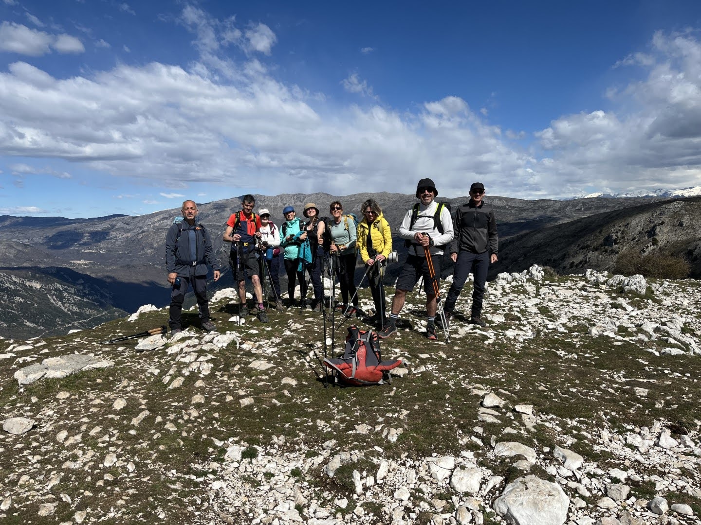 Giorgio Mardi 31 mars nous avons poursuivi le Grand Parcours des Baous (maintenant GRP) sur l'étape Tourrettes-sur-Loup - Coursegoules, mais afin de la rendre accessible au plus grand nombre, et également d'éviter un trop long aller-retour de covoiturage, nous l'avons proposée en 2 randonnées : un aller-retour Coursegoules-Coursegoules, et un aller-retour Tourrettes-Tourrettes, avec un pique-nique commun pour les 2 groupes à mi-chemin départ de Coursegoules à 9h30 pour 15 randonneurs, traversée du joli village, descente vers le pont de la Cagne, et remontée vers le Puy Subert, point culminant de notre rando. Redescente vers le plateau de St Barnabé, ou nous croisons 2 groupes des AVF de Vence, et descente tranquille vers le Bes, sur le GR surplombant Courmes, et la vallée du Loup. Contact radio avec le groupe de Jean-Marc, parti de Tourrettes, et passant par le pic des Courmettes. Nous arrivons au lieu de rendez-vous, et attaquons notre pique-nique en attendant nos camarades... Ceux-ci ont pris un peu de retards, et nous leur laissons la place du pique-nique, après la photo de famille. Remontée (annoncée !) tranquille, vers le Puy Subert, et ensuite vers Coursegoules. Au final, environ 17,5km et 700m de D+ . ... PHOTOS Jean-Marc et Jean-Pascal compte-rendu de la rando du 31 Mars : Tourrettes Tourrettes par le Pic de Courmettes, étape du grand tour des baous. 18km ,980m de D+. Animateur: Jean-Marc et Jean-Pascal Beau temps. 10 randonneurs se sont inscrits. Nous partons à 9h15, nous attaquons par la montée du Pic de Courmettes, le temps est magnifique et nous profitons du paysage. Nous avions prévu de manger avec le groupe de Giorgio, nous partagerons le café. Le retour se fera sans encombres. Une preuve de plus qu'on peut se faire plaisir sans aller chercher très loin. Jean-Marc PHOTOS |