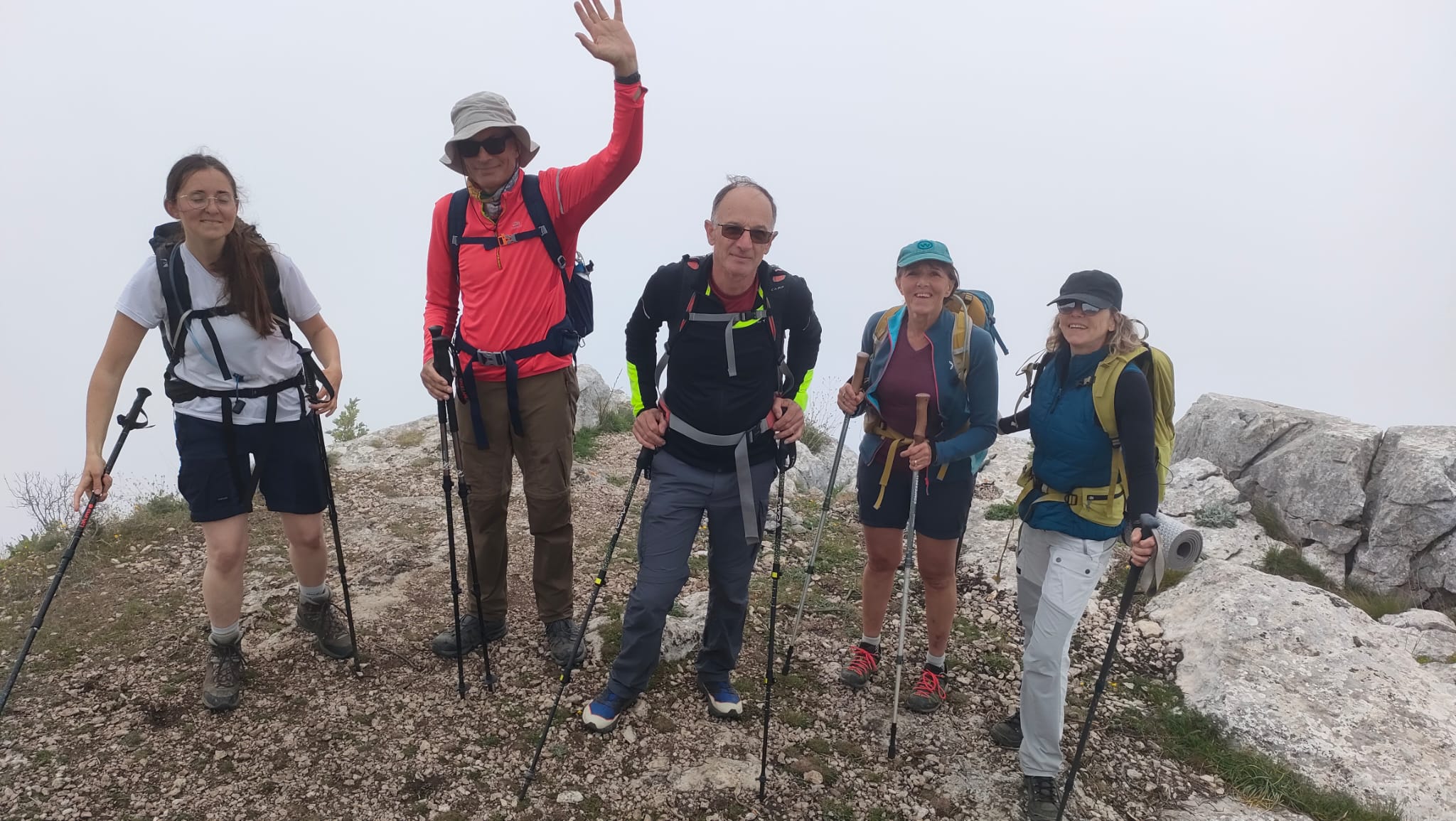 Philippe Bouyon, Le Broc, Carros, Gattières, Saint Jeannet Départ 8 h 45, 6 randonneurs, parité 3 femmes et 3 garçons, pour décider de faire l'étape la plus longue et difficile du Tour des Baous. Une fois n'est pas coutume nous quittons le village de Bouyon par une descente trés agréable et technique en sous bois. Evidemment, il y a eu une montée, tout aussi agréable, en sous bois, pour traverser la route et prendre le chemin direction du Broc. L'arrivée au village du Broc s'est faite sans aucune difficulté, chemin facile, relativement plat. Nous reprenons notre chemin pour rejoindre un autre village Carros qui s'est fait sans aucun problème. Après avoir commencé l'ascension vers Gattières nous reprenons des forces, pas trop le temps de s'attarder. Encore une fois contrairement à d'habitude, la journée se termine par une grosse difficulté. Dénivelé de 550 mètres nous attend avant d'arrivée au Baou de la Gaude. Comme tout le monde était "frais" malgré le brouillard et après avoir fait déjà 18 kilomètres nous décidons au pied du Gros Chêne d'aller découvrir le Baou de La Gaude que personne n'avait fait. Malheureusement, aucune vue tellement le brouillard était épais. Le retour à la voiture à Saint Jeannet dernier village de ce périple fût une formalité même si certaines étaient bien contente que Chantal les accompagne à leur domicile. En tout cas bravo à tous, tout s'est bien passé durant ces 8h de marche, 22 kilomètres et 1220 mètres de dénivelé positif et 1400 mètres négatif. Philippe Les Photos sont au même endroit que celles de Jean-Marc ci-dessous Jean-Marc compte-rendu de la rando du 07 Avril : Vence Tourrettes, étape du grand tour des baous. 14km ,820m de D+. Animateur: Giorgio suppléé par Jean-Marc et Angelo. Temps couvert. 10 randonneurs se sont inscrits. C'est décidé, nous ferons la rando dans la brume. La montée vers le Puy de Naouri se fait dans la brume qui ajoute un petit coté magique. Nous bénéficions d'une éclaircie au sommet pour profiter du paysage. Le ciel nous octroie quelques minutes supplémentaires de clémence pour le pique nique et il est temps de rentrer. Le retour se fait sans problèmes, il un peu plus de 15h quand tous le monde repart chez soit. Jean-Marc PHOTOS |