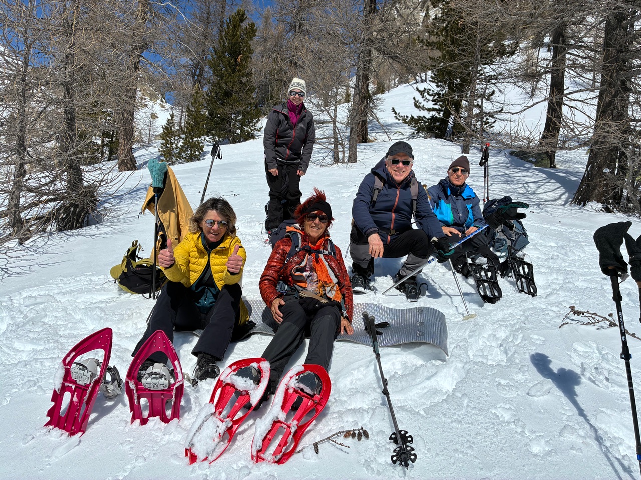07 Avril 2026 Col Mercière Avec l’avancement de la saison, les motivations pour faire des raquettes s’émoussent… Seulement 3 randonneurs au départ d’Isola 2000 ce matin-là. Ciel limpide, neige abondante, pas de vent. Après le tour du lac, pique-nique au col Mercière devant une vue panoramique. Au retour, surprise ! Jean-Luc T et Alain C, venus faire du ski, nous ont rejoints au bar à Lulu. Bilan : 460 m / 9 km. Michel. |