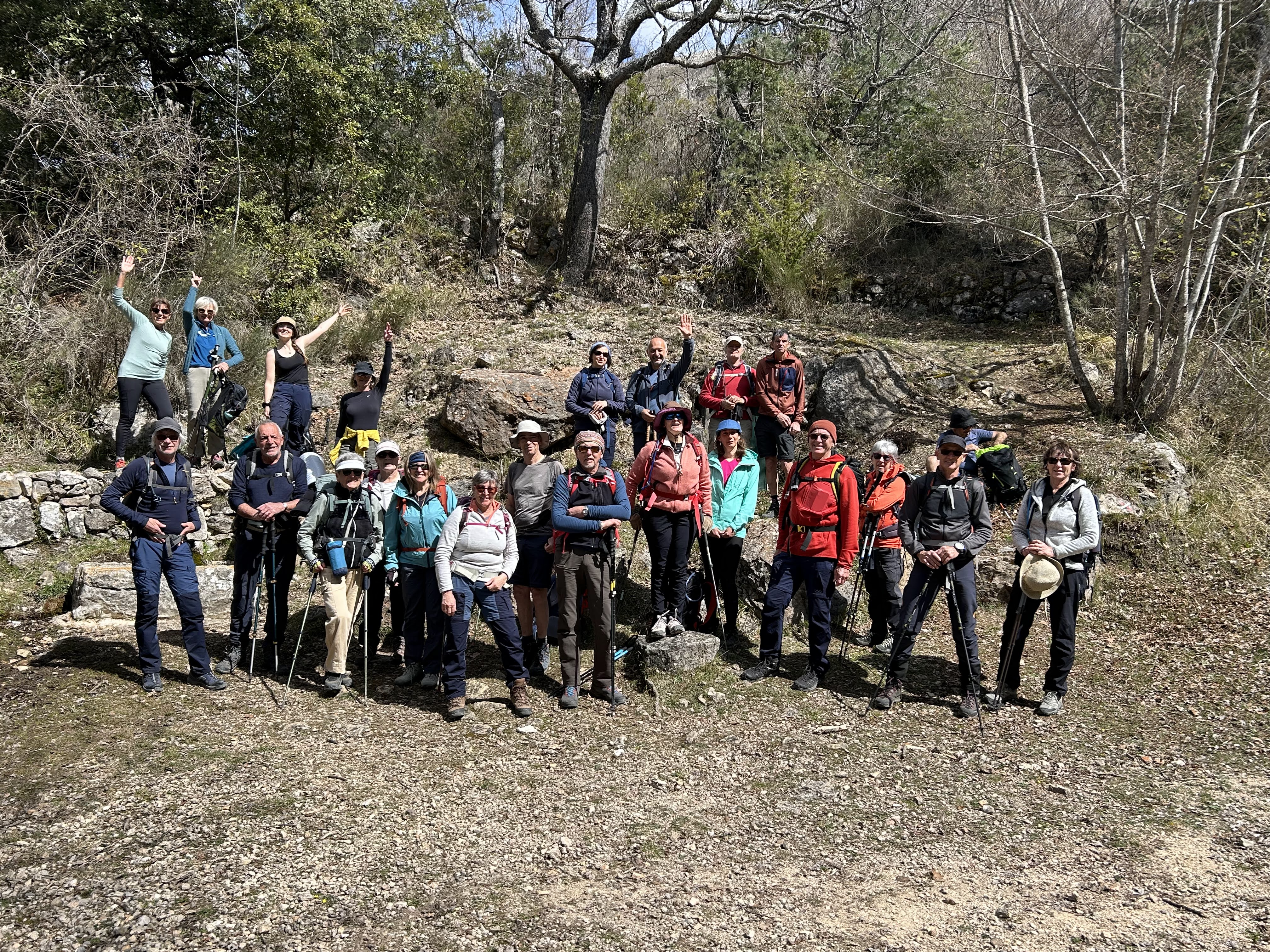 Giorgio Mardi 31 mars nous avons poursuivi le Grand Parcours des Baous (maintenant GRP) sur l'étape Tourrettes-sur-Loup - Coursegoules, mais afin de la rendre accessible au plus grand nombre, et également d'éviter un trop long aller-retour de covoiturage, nous l'avons proposée en 2 randonnées : un aller-retour Coursegoules-Coursegoules, et un aller-retour Tourrettes-Tourrettes, avec un pique-nique commun pour les 2 groupes à mi-chemin départ de Coursegoules à 9h30 pour 15 randonneurs, traversée du joli village, descente vers le pont de la Cagne, et remontée vers le Puy Subert, point culminant de notre rando. Redescente vers le plateau de St Barnabé, ou nous croisons 2 groupes des AVF de Vence, et descente tranquille vers le Bes, sur le GR surplombant Courmes, et la vallée du Loup. Contact radio avec le groupe de Jean-Marc, parti de Tourrettes, et passant par le pic des Courmettes. Nous arrivons au lieu de rendez-vous, et attaquons notre pique-nique en attendant nos camarades... Ceux-ci ont pris un peu de retards, et nous leur laissons la place du pique-nique, après la photo de famille. Remontée (annoncée !) tranquille, vers le Puy Subert, et ensuite vers Coursegoules. Au final, environ 17,5km et 700m de D+ . ... PHOTOS Jean-Marc et Jean-Pascal compte-rendu de la rando du 31 Mars : Tourrettes Tourrettes par le Pic de Courmettes, étape du grand tour des baous. 18km ,980m de D+. Animateur: Jean-Marc et Jean-Pascal Beau temps. 10 randonneurs se sont inscrits. Nous partons à 9h15, nous attaquons par la montée du Pic de Courmettes, le temps est magnifique et nous profitons du paysage. Nous avions prévu de manger avec le groupe de Giorgio, nous partagerons le café. Le retour se fera sans encombres. Une preuve de plus qu'on peut se faire plaisir sans aller chercher très loin. Jean-Marc PHOTOS |