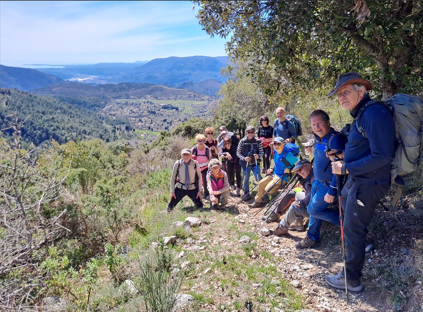 Jeudi 2/04 Levens Col du Dragon C'est la cote 1111 métres que les 16 participants du jour ont atteint en partant du village de Levens aprés 630 m de D+ (un peu plus que prévu comme d'habitude...) pour 9Km . Du soleil et un ciel bleu et durant la montée avec une suite de raidillons plus ou moins difficiles, magnifiques vues sur la côte. C'est sur le reservoir d'eau du col du Dragon que nous nous installons pour le pique nique ,aprés quelques friandises, un petit vent frais nous pousse a redescendre et nous rencontrons un petit troupeau de chévres un lama ,des chevaux , des moutons et des oies... nous n'étions pas dans un zoo mais en pleine nature pour cette belle journée Alain R PHOTOS |